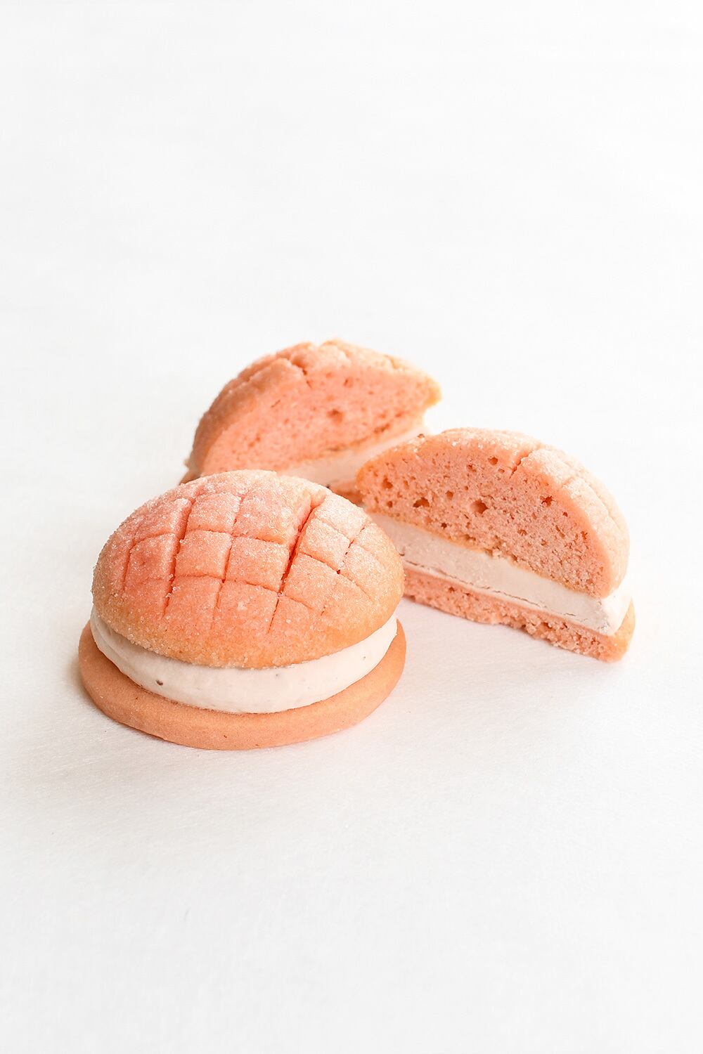 メロンパンに憧れて。だからね、メロンパンでは無いのです。メロンパンの形をしたクッキークリームサンドです、あしからず。